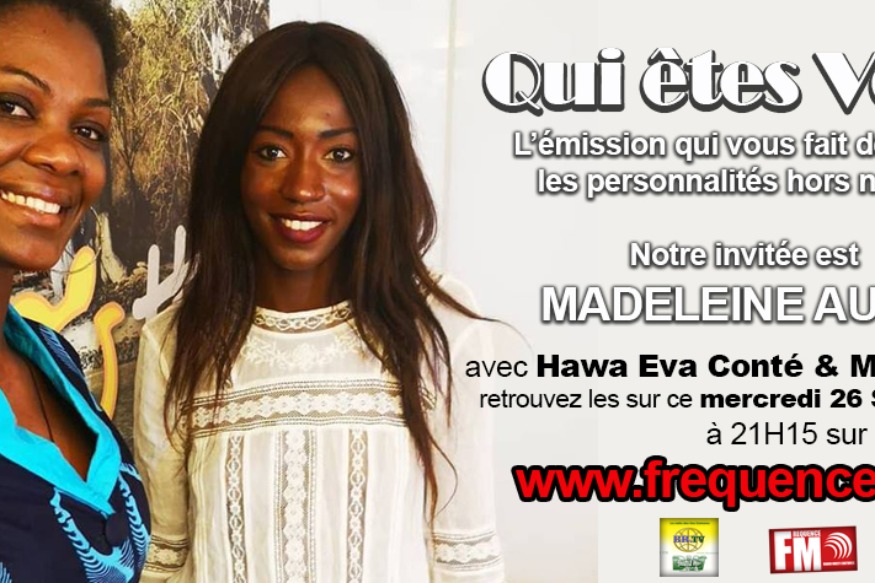 La nouvelle émission de Fréquence FM présente par Hawa Eva Conté & Maxime Granier. Retrouvez les sur ce mercredi 26 Septembre 2018 à 21H15 sur www.fréquencefm.comQui êtes Vous ? L’émission qui vous fait découvri r les personnalités hors normes Notre invitée est MADELEINE AUTET