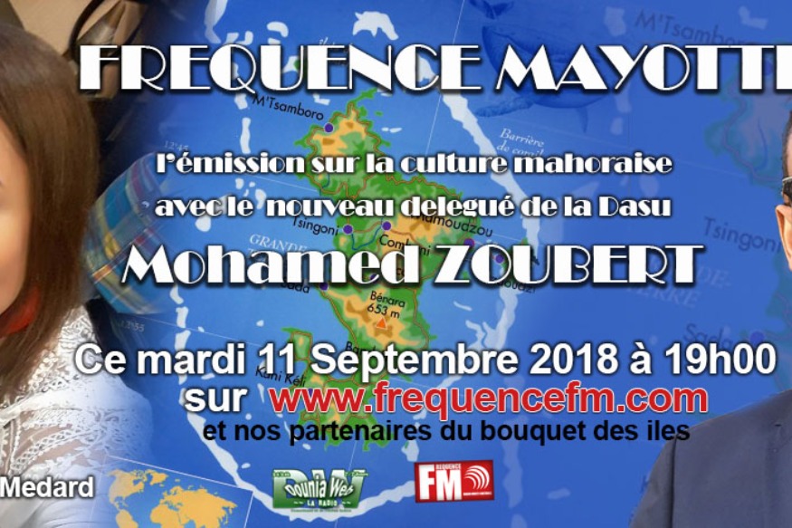 L'équipe de Fréquence FM sont de retour. Pour la première de l'émission de mayotte, nous accueillions Mr Mohamed ZOUBERT, Le nouveau Délégué de la Dasu qui viendra nous parler ces projets et ces actions pour la communauté Maoraise. Ce Mardi à 19H00 sur Fréquence FM ( Sur le site, l'application de Fréquence FM et le facebook). L'émission présente par Sarah Medard. ...