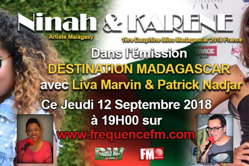 Fréquence Fm : Ninah artiste Malagasy et Karene 1ère Dauphine Miss Madagascar France dans l'émission Destination Madagascar