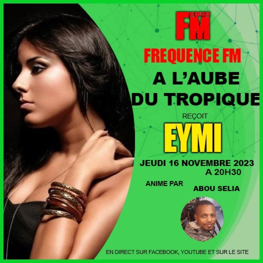 Eymi sera présente dans l'émission "A l'aube du Tropique" à 20h30 sur Fréquence FM."