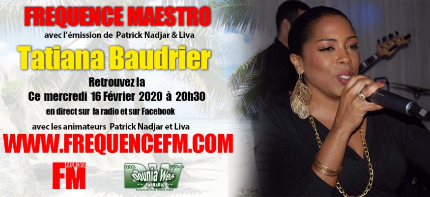 Nadjar Patrick et Liva Marvin vous donnent rendez-vous ce lundi 15 février 2021 à partir de 20h30 sur frequencefm.com, en direct et en Facebook live, avec l'artiste : Tatiana Baudrier. Sans oublier Abou Selia à la technique et animation.