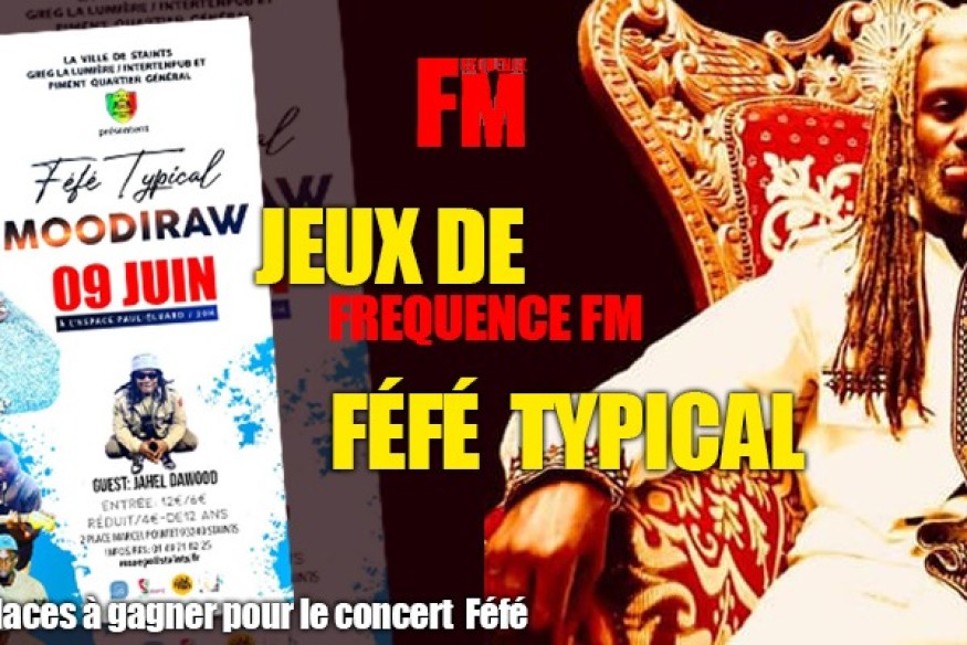Participez et donnez la bonne réponse aux jeux de fréquence FM pour gagner des places au concert de Féfé Typical. Ce concert aura lieu ce vendredi 09 juin 2023 à Stains, à la salle Espace...