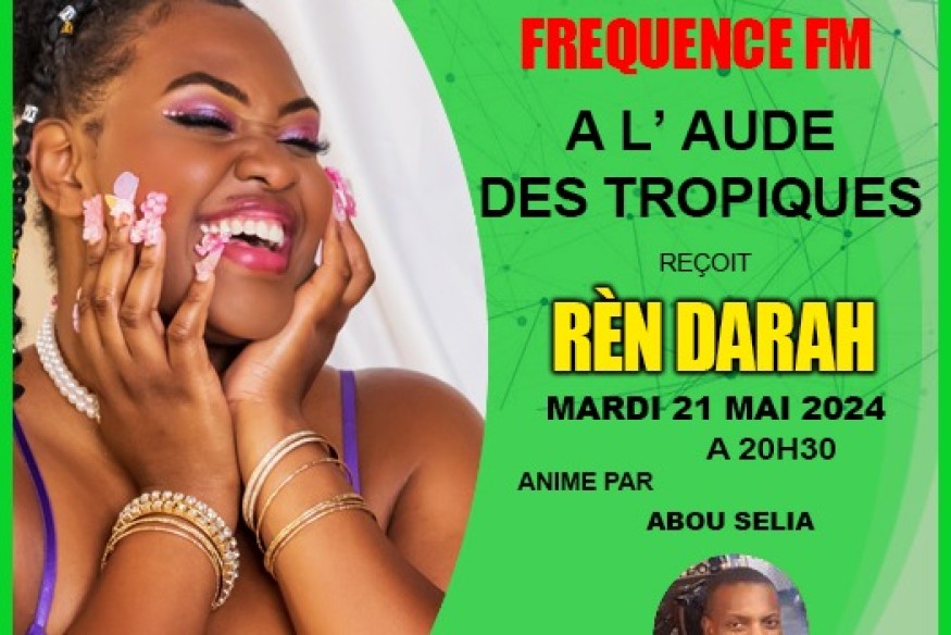 Rejoignez-nous ce soir à 20h30 pour une émission exceptionnelle avec l'artiste Rèn Darah. Cette jeune artiste originaire d'Haïti et résidant au Canada, puise son inspiration dans une variété de genres musicaux tels que le R&B/Soûl, la variété antillaise et la musique française Découvrez de son univers et des surprises inédites. Restez connectés. Rèn Darah sera présente dans l'émission "A l'aube du Tropique" à 20h30 sur Fréquence FM...
