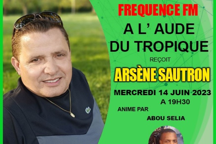 Originaire de l'ile de la Réunion, Arsène Sautron promotionne la musique Maloya et séga de l'ile de la réunion. Il viendra nous parler de son parcours et aussi des projets musicaux dans l' émission "À l'aube du tropique". Ce sera diffusé en direct sur www.frequencefm.com, en live sur Youtube et Facebook de notre radio et nos partenaires. ce mercredi 14 Juin 2023 à 19h30. ...