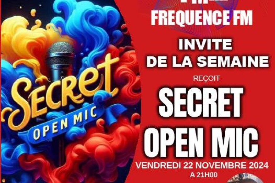 Ce vendredi soir à 21h00, l'émission "L'Invité de la Semaine" met à l'honneur une équipe dynamique et passionnée : celle de Secret Open Mic. Préparez-vous pour un moment exceptionnel de découvertes musicales, d'émotions artistiques et de talents bruts ! Ils viendront nous parler de leur événement SECRET OPEN MIC, qui aura lieu le samedi 23 novembre 2024 à 21h00 au Mirano, à Paris....