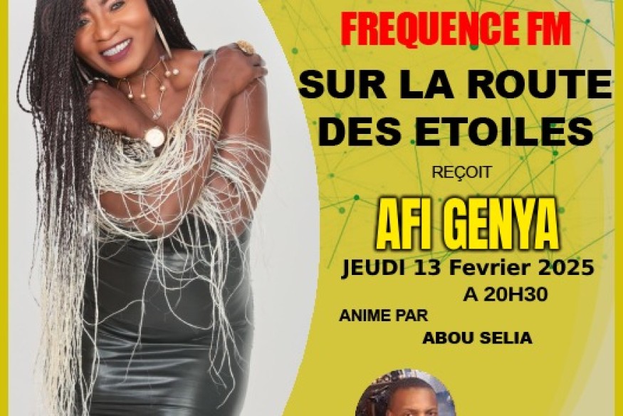 Ne manquez pas "Sur la Route des Étoiles", votre émission incontournable. Jeudi 13 février 2025 à 20h30 on reçoit l'incroyable Afi Genya pour une interview exclusive. Plongez dans l'univers fascinant de cette artiste talentueuse, découvrez son parcours, ses inspirations et ses projets à venir. En direct sur Facebook et sur notre site. Soyez au rendez-vous et interagissez avec nous en live. Fréquence FM, là où brillent les étoiles....