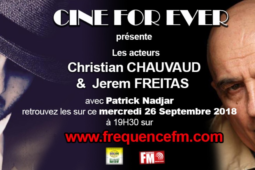 L'équipe de Ciné forever vous donne rendez vous ce soir à partir de 19h30 sur frequencefm.com avec les acteurs Christian CHAUVAUD & Jerem FREITAS Nous aurons le plaisir de recevoir Christian CHAUVAUD , acteur de cinema (pres de 35 films avec m.Jean-Pierre Mocky) et de théatre et Jerem Freitas , metteur en scène et acteur de la piéce Cher Parrain. Une émission Ciné Forever à ne pas rater qui sera diffusée sur www.frequencefm.com et sur FaceBook live. ...