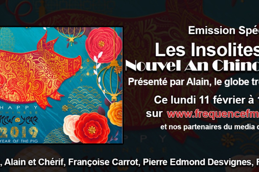 Retrouvez Alain, le globe trotteur en action pour l'émission spéciale "Les insolites du nouvel an chinois à Lyon." Les invités seront Alain et Chérif, Françoise Carrot, Pierre Edmond Desvignes, Romain Lambert .. Aujourd'hui à 15HOO sur www.frequencefm.com ...
