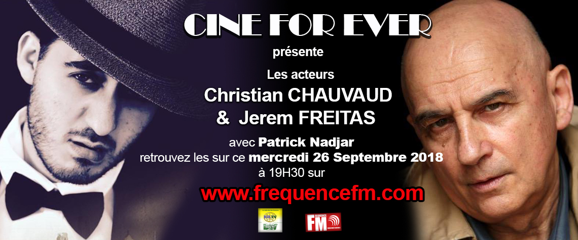 L'équipe de Ciné forever vous donne rendez vous ce soir à partir de 19h30 sur frequencefm.com avec les acteurs Christian CHAUVAUD & Jerem FREITAS