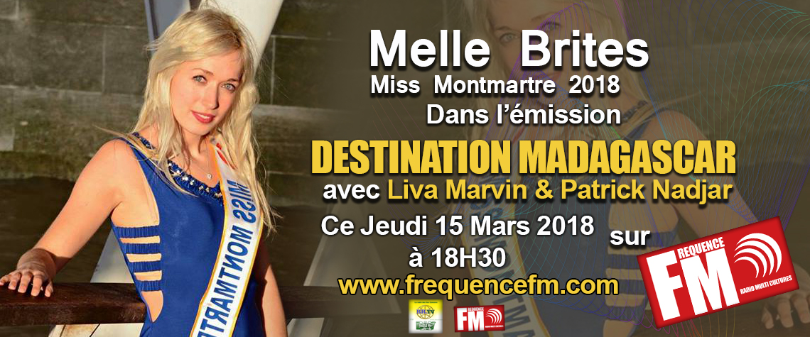 La Miss Montmartre Melle Brites Marques Aurélie est invitée par l'équipe Fréquence Fm pour nous faire découvrir son parcours et ses projets avec Comité Miss Montmartre. Ce jeudi à 18H30 sur Fréquence FM.