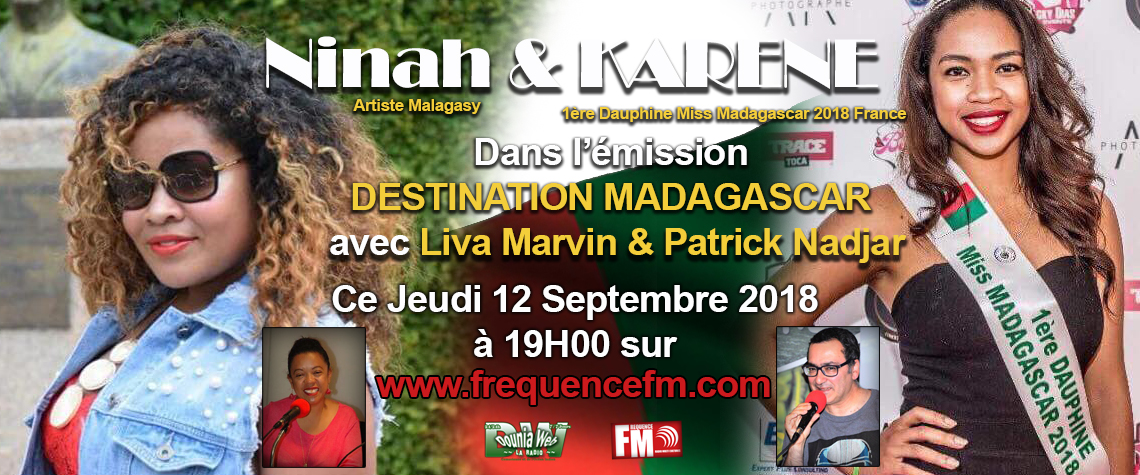 Soyez au rendez-vous avec nos invitées Ninah artiste Malagasy et Karene 1ère Dauphine Miss Madagascar 2018 France