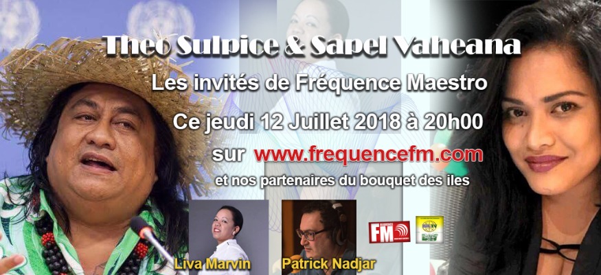 Dans l'émission Fréquence Mastro, ce jeudi 12 juillet 2018 à 20h00 avec Patrick et Liva seront avec leurs invités : le Chanteur de la Polynésie française Theo Sulpice avec sa chanteuse Sapel VaheanaRestez connecté et suivez nos actualités sur frequencefm.com et sur facebook live.