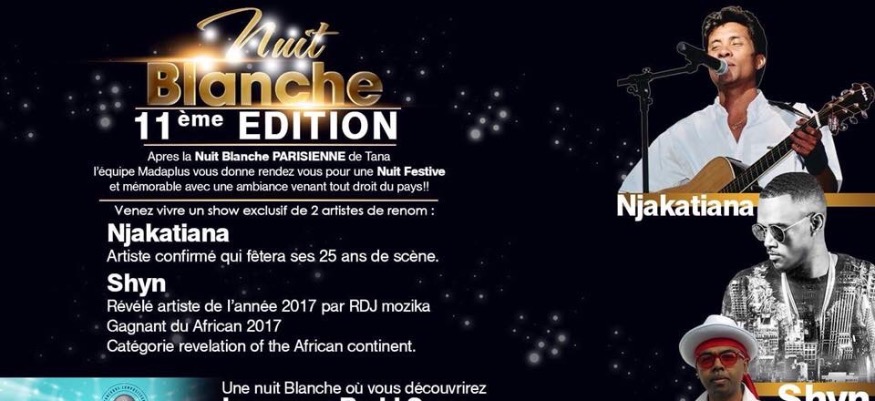 Nuit Blanche 11e Edition avec un show exclusif de 2 artistes: Njakatiana et Shyn / le groupe Redd Syga et le laureat du Feo Tokana Mozika Iray emission RTA Mada