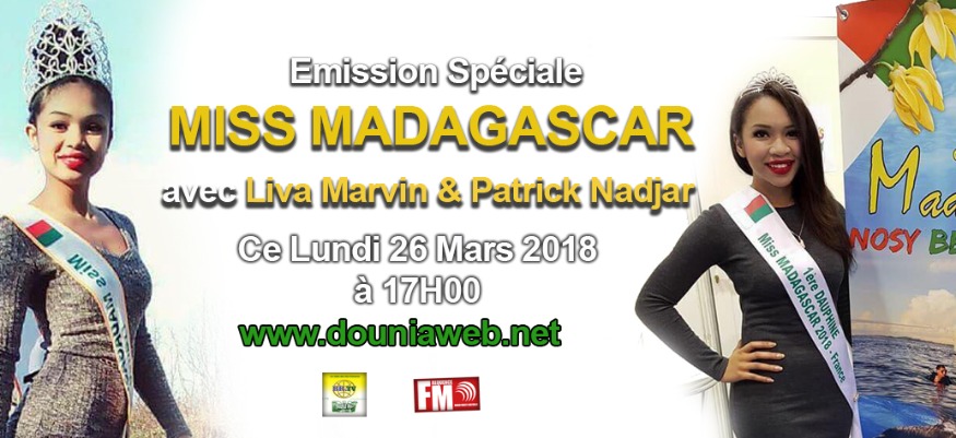 Nos invitées étaient Melle Miss de Madagascar Anicha Miss Madagascar 2018 France et sa dauphine Ķarène Rasamoel a fait découvrir de son parcours et ses projets. Emission animée par Liva et Patrick le Jeudi 29 Mars 2018 sur les sites : www.frequencefm.com et www.douniaweb.net